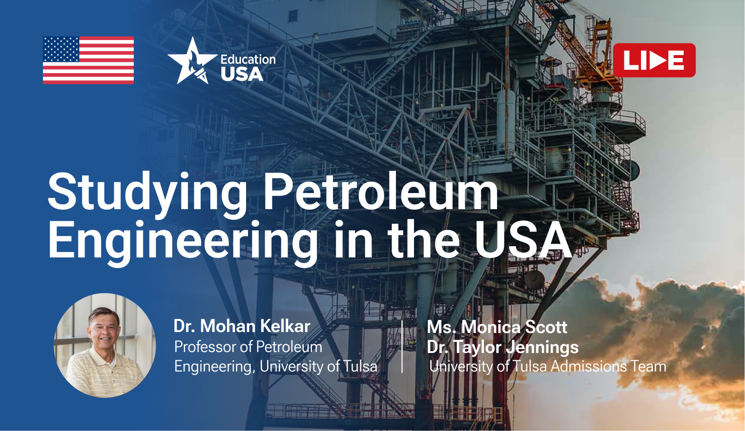 Experts from the University of Tulsa—one of the nation's leading institutions in petroleum engineering—will provide valuable insights into their renowned programs, including admissions requirements, strong industry connections, and the vibrant student experience in the U.S. Whether you're an international applicant or exploring options domestically, this webinar offers clear, practical advice to help you navigate your educational journey and make informed decisions about studying in the USA.
