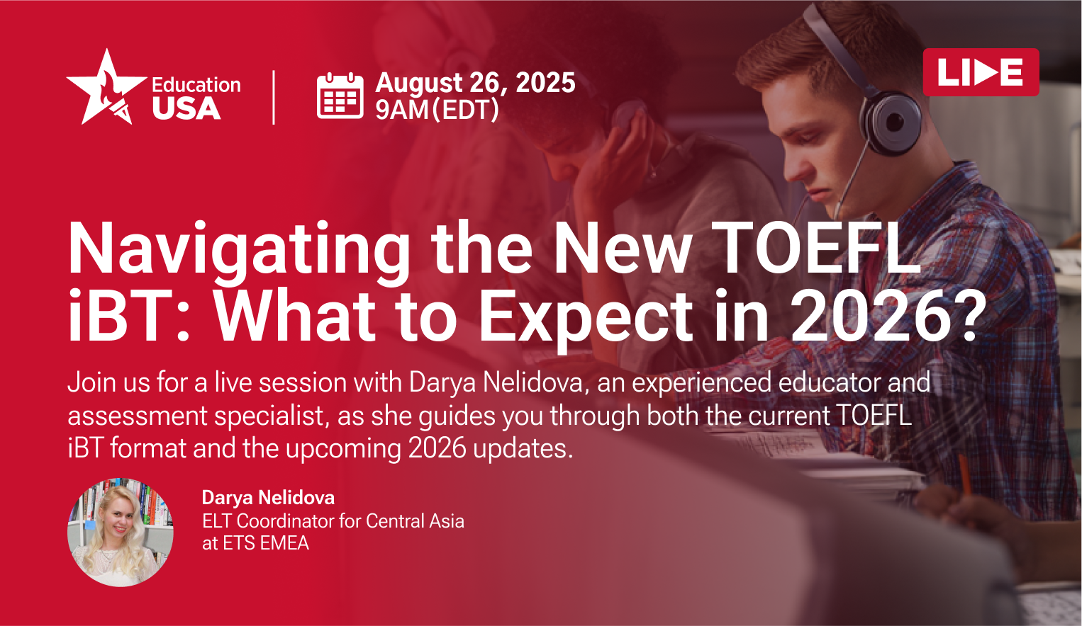 Join us for a live session with Darya Nelidova, an experienced educator and assessment specialist, as she guides you through both the current TOEFL iBT format and the upcoming 2026 updates. This session is designed to help test-takers, educators, and advisors fully understand: